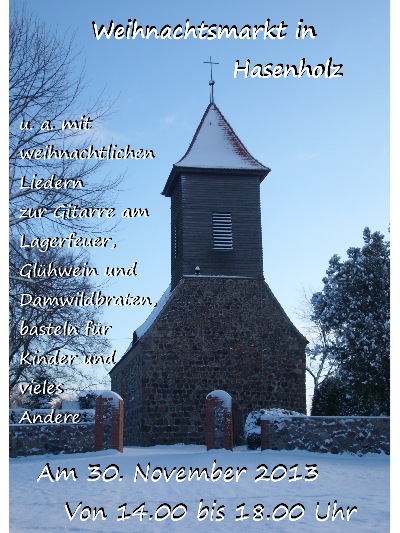 Am 30.11.2013 findet der diesjährige Weihnachtsmarkt in Hasenholz statt.Alle sind herzlich eingeladen.
